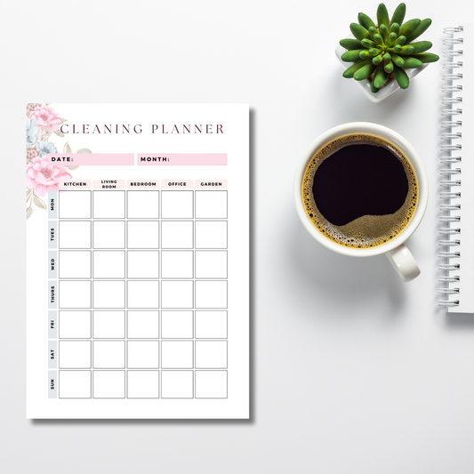 Pink Flower Cleaning Planner Printable, Home Cleaning Spreadsheet, Pink Cleaning Template, A4/A5, Instant Download