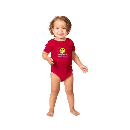 Inspirational Baby Short Sleeve Bodysuit: "I Keep Smiling" - Fashion With Meaning