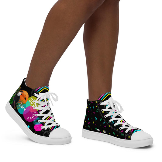 Inspirational High Top Canvas Shoes | Unisex | Toucan Exotic Bright Love Colour- Fashion With Meaning - US Size