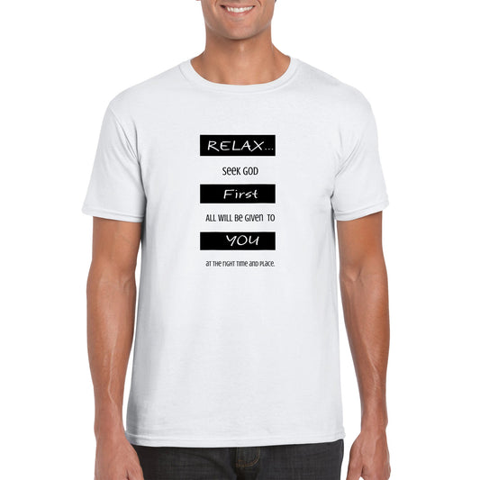 Inspirational T-shirt, Words Of Wisdom: Relax, Seek God First - Fashion With Meaning Tee