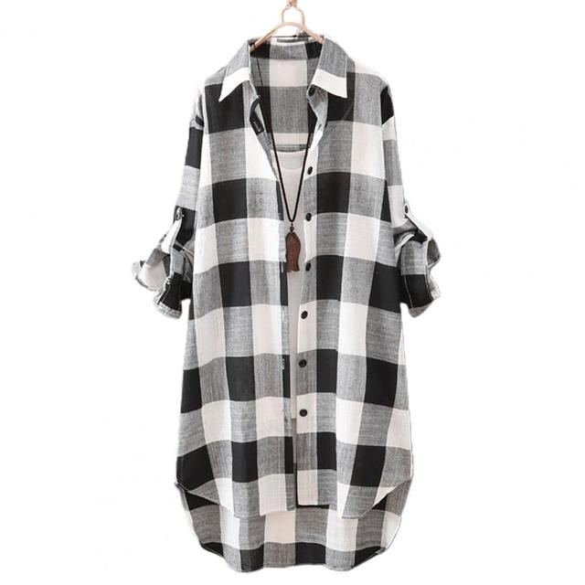 Introducing the Sunscreen Shirt, the perfect shirt for any woman looking to protect herself from the sun while maintaining her stylish edge. This shirt features a turn-down collar design that flatters the neckline, and roll-up sleeves with button closures for a hot, on-trend look. The plaid print is eye-catching and unique, and the loose fit allows you to move and breathe easily. Made from high quality polyester material, this shirt is soft, breathable, and comfortable to wear – perfect for a day in the sun. Choose from six sizes (S-3XL) for the perfect fit.